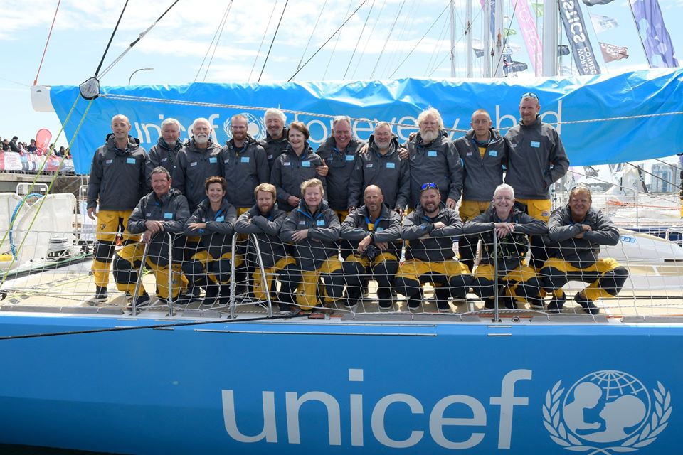 I was part of the team UNICEF crew. By the time of the mid March 2020 update to this Home page I had already completed Leg 2 from Punta del Este, Uruguay to Cape Town, South Africa; 4050 nautical miles across the South Atlantic (we finished 2nd) and Leg 3 from Cape Town to Fremantle. Western Australia (via, in our case, Durban), a race that should have been 4750 nautical miles but, due to our medical emergency, ended up being 6547 nautical miles. Thanks to our medical diversion we finished 9th. That was a total (at that time) of 10,597 nautical miles in every condition from flat calm wind holes to Violent Storm Force 11.